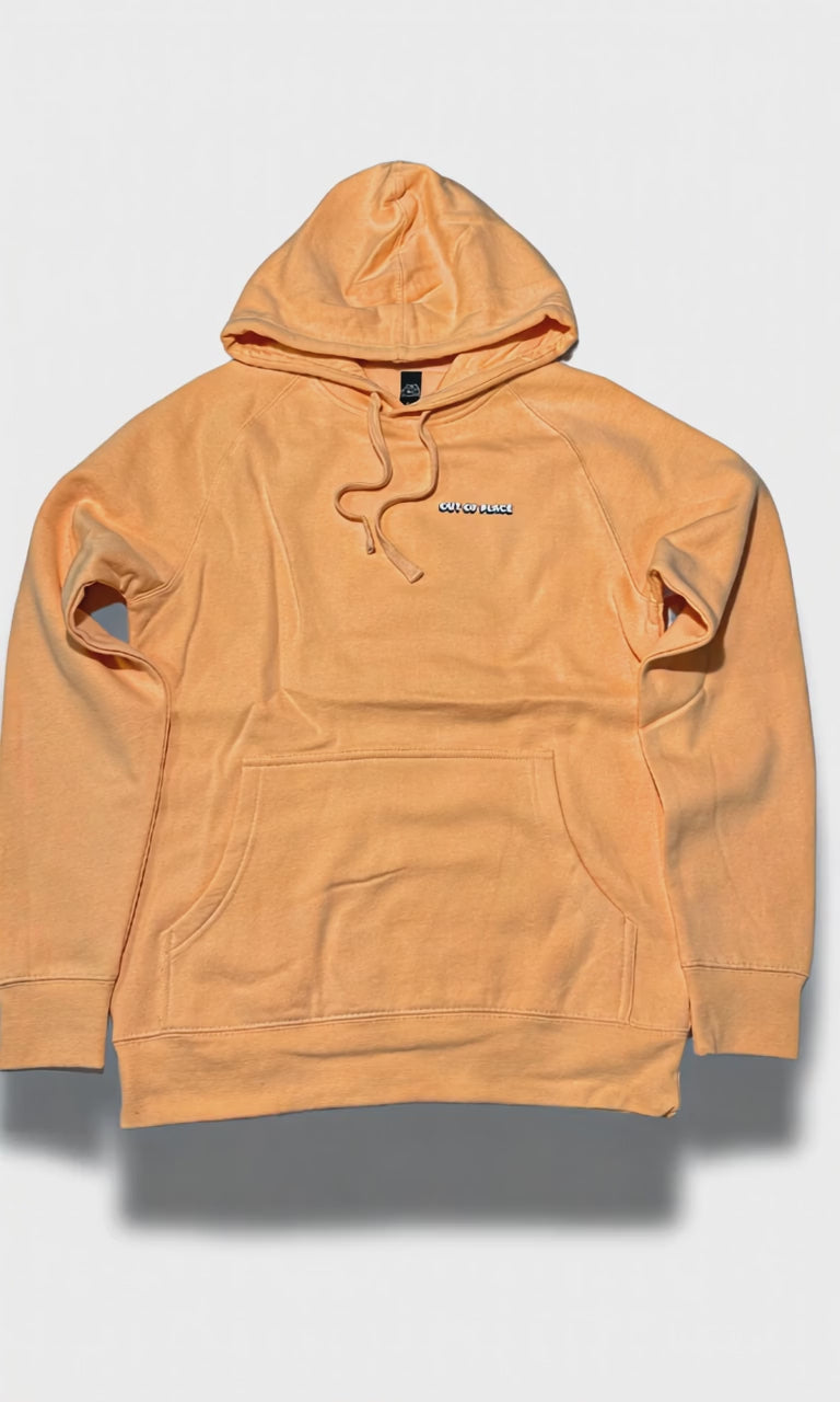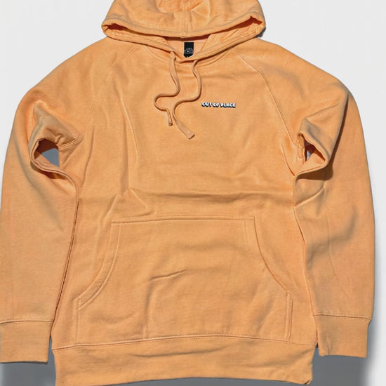 Our OOP peach hoodie featuring a kangaroo pocket, lined hood, tonal drawcord, sleeve cuff ribbing, preshrunk to minimise shrinkage